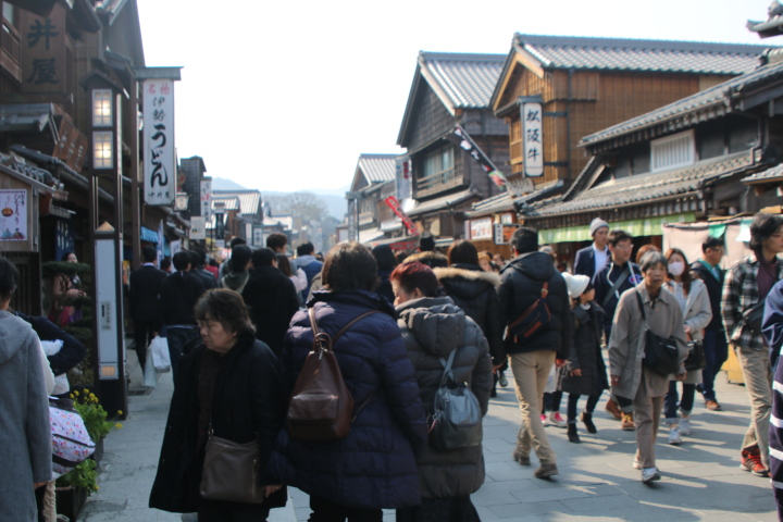 伊勢神宮・内宮前で栄えるおはらい町。宇治橋から五十鈴川に沿って続くおよそ800mの美しい石畳の通りには、お伊勢さん特有の切妻・入母屋・妻入り様式の町並みが軒を連ねます。通りにはたくさんの土産物店・飲食店や商家が建ち並び、参拝後の町歩きがお楽しみ頂けます。また、神宮道場や祭主職舎などの歴史的建造物などもあり、お伊勢さんらしいレトロな雰囲気がたっぷり詰まっています。